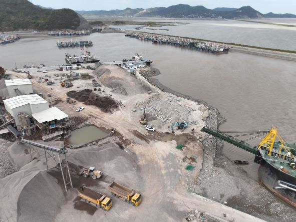 浙江唐頌集團有限公司通過競拍取得了該礦的采礦權,并于202241取得采礦許可證,開采礦種為建筑用石料(凝灰巖),生產規模為235萬噸/年,出讓年限1年。礦區面積:0.0517km2;開采深度:+66.5m+6.5m