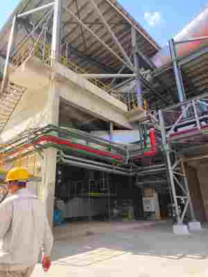 本次建設項目6000t/d水泥熟料生產線,一座12MW余熱發電等相關配套設施已經完成并經168h考核,并在滿負荷試生產。 配套建設350萬噸/年水泥磨粉生產線因未完成建設,不納入本次評價范圍。